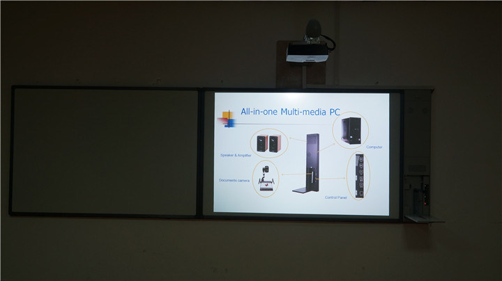 Прибор интегрирует взаимодействующую доску сочинительства, репроектор и ПК OPS неразъемный. Доска сочинительства содержит взаимодействующую доску доски и отметки сочинительства. Взаимодействующую доску сочинительства можно использовать как взаимодействующая доска whiteboard и сочинительства в тоже время. И доска отметки может написать специальной ручкой чернил.